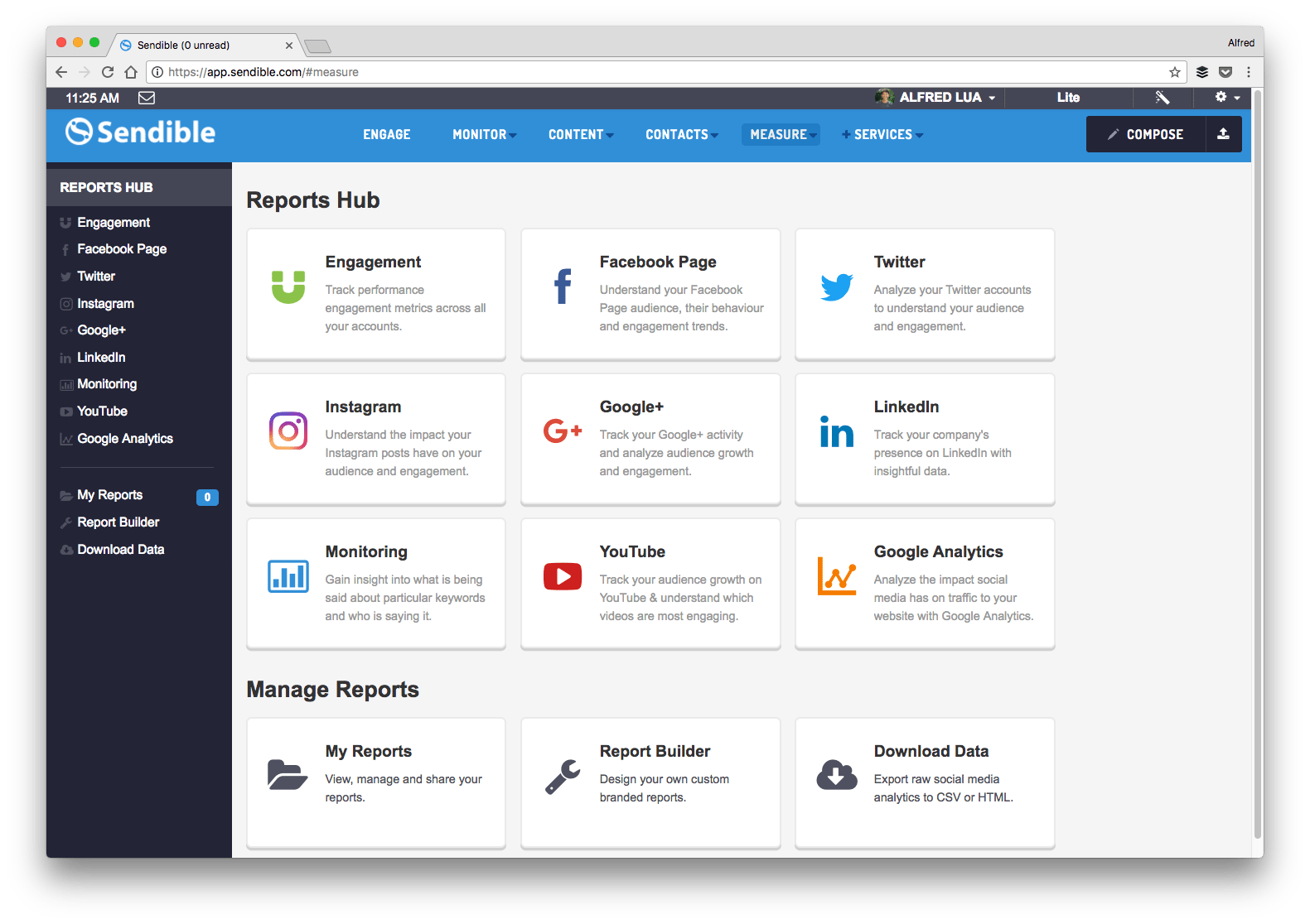 Example: Sendible CRM making reports from social media platform